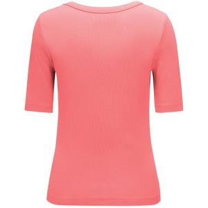 Mezz Women's Cotton Rib Knit T-Shirt | Sunset Coral