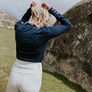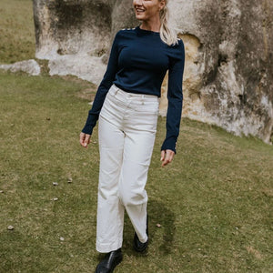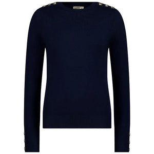 The Nicki Knit Crew is the perfect blend of classic style and modern detailing, designed to effortlessly complete any outfit. Featuring signature Moke pale gold hardware on both the shoulders and cuffs, this versatile knit adds a touch of sophistication to your everyday look.