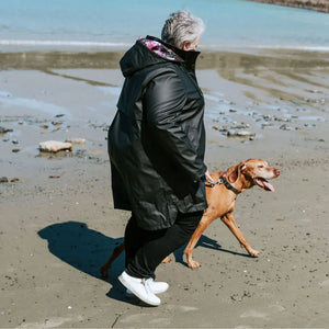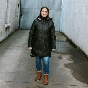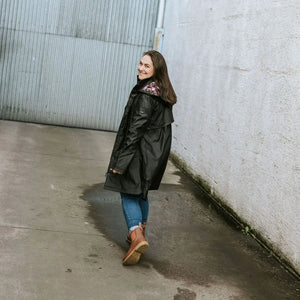 Billie Women's Rain Coat - Moke x Evie Kemp - Black with Purple Fleur