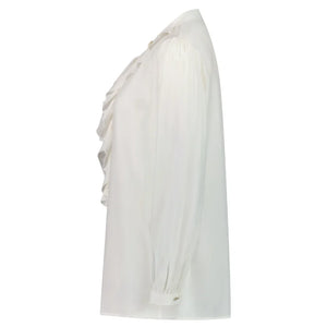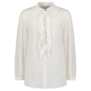The Jade button-down blouse has a relaxed fit and is crafted in a beautiful Cupro Rayon fabric,  featuring ruffle detail down the front, and voluminous sleeves.  The perfect blouse that will take you from day to night.