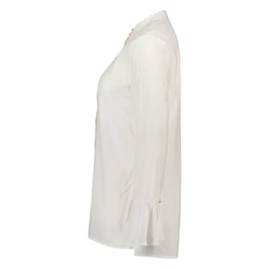 Crafted in a beautiful Cupro Rayon blend, The JOLEEN is a round neck, button-through shirt featuring a high-low hem, bell cuffs and pale gold hardware. Complete with a concealed button placket for a dressy and polished look.