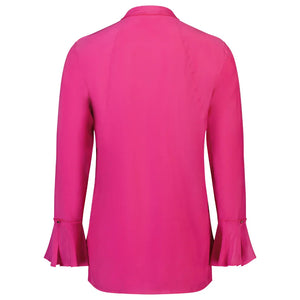 Crafted in a beautiful Cupro Rayon blend, The JOLEEN is a round neck, button-through shirt featuring a high-low hem, bell cuffs and pale gold hardware. Complete with a concealed button placket for a dressy and polished look.