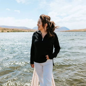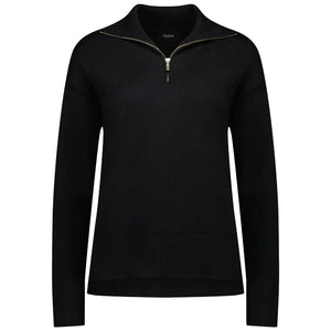 Mick Women's 1/4 Zip Up Knit Sweater - Black