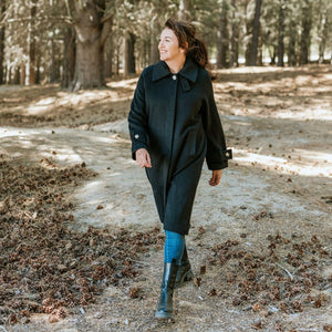 A classic cut, this fully tailored, satin-lined, button-down wool coat features an elegant collar and body shape, front pockets, buckled sleeve straps. Maddie is a style which will never date. Made from our Lux 50/50 Wool blend, the Maddie will keep you warm and stylish this winter!