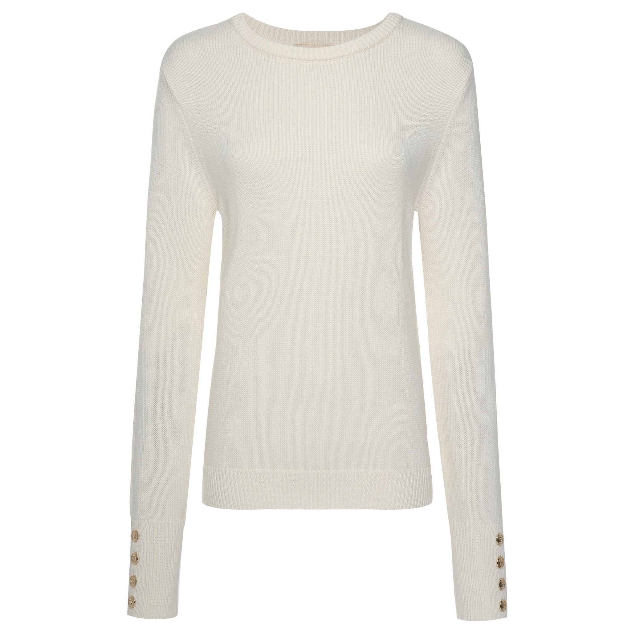 Elegant gold button accents at the cuffs add a subtle touch of detail, elevating this otherwise minimal design with a hint of polish.