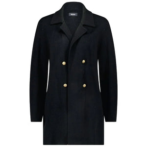 Designed in a sleek open blazer silhouette, it features pale gold-detailed buttons, adding a refined touch. Whether you're dressing for work or unwinding on the weekend, the Mila Knit Coat is your go-to layer for sophisticated yet effortless style