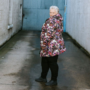 Arnie Women's 90/10 Reversible Down Coat - Cypress/Purple Fleur