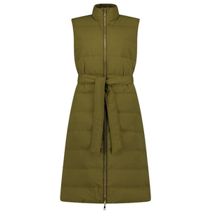 Featuring a down-filled front, a zip and snap closure, and a removable belt tie, this vest allows for a customizable fit—wear it cinched for a defined silhouette or open for a relaxed, effortless look. Versatile and chic, it’s an essential addition to any wardrobe.