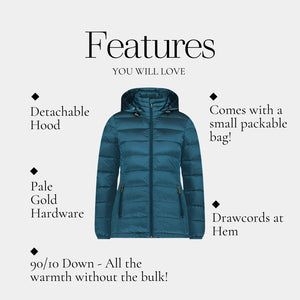 Lynnette Women's 90/10 Packable Down Jacket - Empire Teal