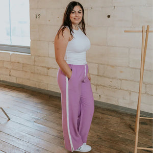 The perfect blend of style and comfort. Crafted from a lightweight, breathable fabric, these pants are designed to keep you cool and comfortable no matter the occasion. Featuring chic cream contrast stripes down each leg and stylish side splits at the hem, these pants bring a modern twist to a classic silhouette.