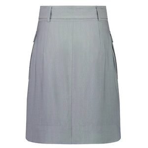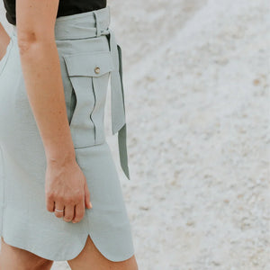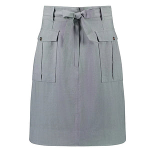 Mid length, high waisted skirt made in a luxurious lightweight Viscose Nylon fabric. Featuring a fly front closure, front pockets with pale gold buttons and a curved hemline with side splits. Wear me casually with a tee to all those summer BBQ's coming up or dress me up and pair me with a shirt for work!