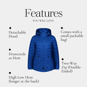 Perfect for travel, weekend getaways, school runs, or layering on chilly mornings, the Cushla packs down into its own compact bag, making it easy to take anywhere. Whether you're running errands, exploring the outdoors, or commuting to work, this jacket ensures you stay warm, stylish, and ready for anything.