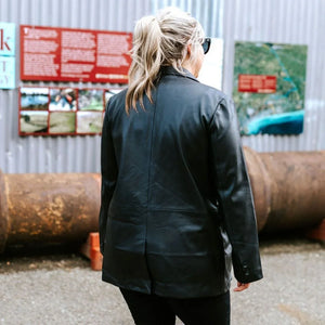 A casual, fitted blazer, the Emmy is made of a beautiful suede-back faux leather with a natural goat grain finish. This soft touch fabrication has an amazing hand feel and tailors exceptionally well. Emmy is the perfect jacket to wear over your favourite t-shirt and jeans for an effortlessly chic look of casual yet cool.