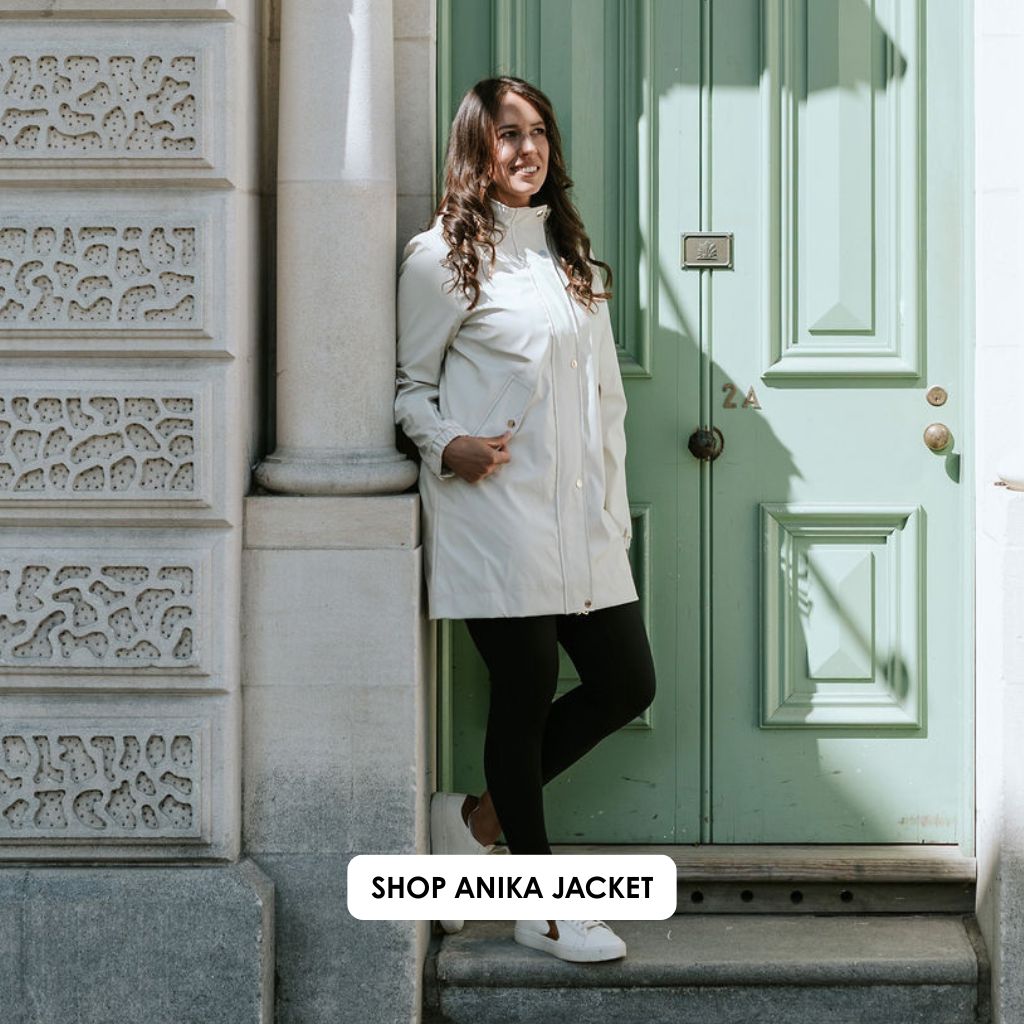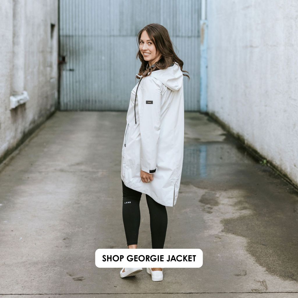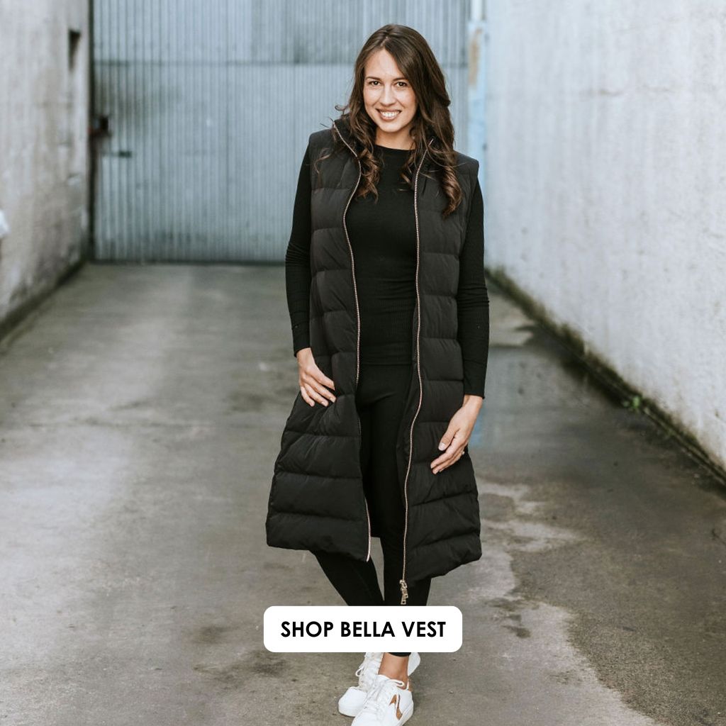 Bomber, vests, rain coat: Black leggings + white sneakers.