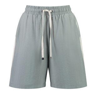 Made in a lightweight Viscose Nylon fabric, featuring 2 side pockets with contrast cream stripes down each side, elasticated waistband and cream waist ties with silver metal branded eyelets and stoppers to elevate their look. The perfect everyday casual (but not too casual!) shorts you need this summer. Pair with your favorite sandals or sneakers!