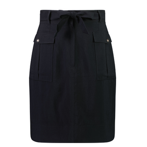 Mid length, high waisted skirt made in a luxurious lightweight Viscose Nylon fabric. Featuring a fly front closure, front pockets with pale gold buttons and a curved hemline with side splits. Wear me casually with a tee to all those summer BBQ's coming up or dress me up and pair me with a shirt for work!