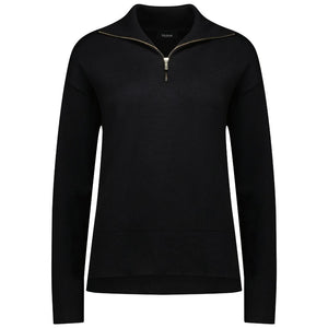 Mick Women's 1/4 Zip Up Knit Sweater - Black