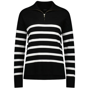 Mick Women's 1/4 Zip Up Knit Sweater - Black/Ecru Stripe