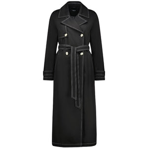 A traditional trench coat, Kim features a contrast top stitch and dressed-up satin lining, along with all the features you'd expect of a trench coat: epaulettes, storm flap, buckled sleeve straps, and more! Produced in a high-end tailored manufacturing facility, the Kim is a true tailored raincoat, and fully fused.