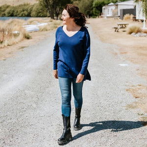 Abby 2.0 Women's V Neck Sweater - Blue Depths