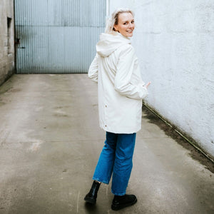 Stay stylish and dry with the Anika Raincoat, designed for a modern utility-chic look. Featuring an oversized hood with adjustable pale gold toggles, this jacket offers both function and fashion. Snap-closure side pockets and wrist snaps add practicality, while the easy snap placket over a two-way front zipper ensures versatile wear. Elevated with pale gold hardware, the Anika Raincoat is the perfect blend of style, comfort, and weather protection.