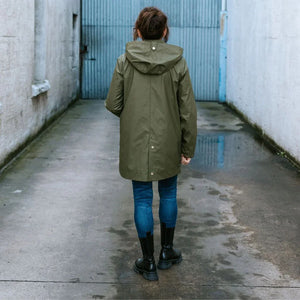 Stay stylish and dry with the Anika Raincoat, designed for a modern utility-chic look. Featuring an oversized hood with adjustable pale gold toggles, this jacket offers both function and fashion. Snap-closure side pockets and wrist snaps add practicality, while the easy snap placket over a two-way front zipper ensures versatile wear. Elevated with pale gold hardware, the Anika Raincoat is the perfect blend of style, comfort, and weather protection.