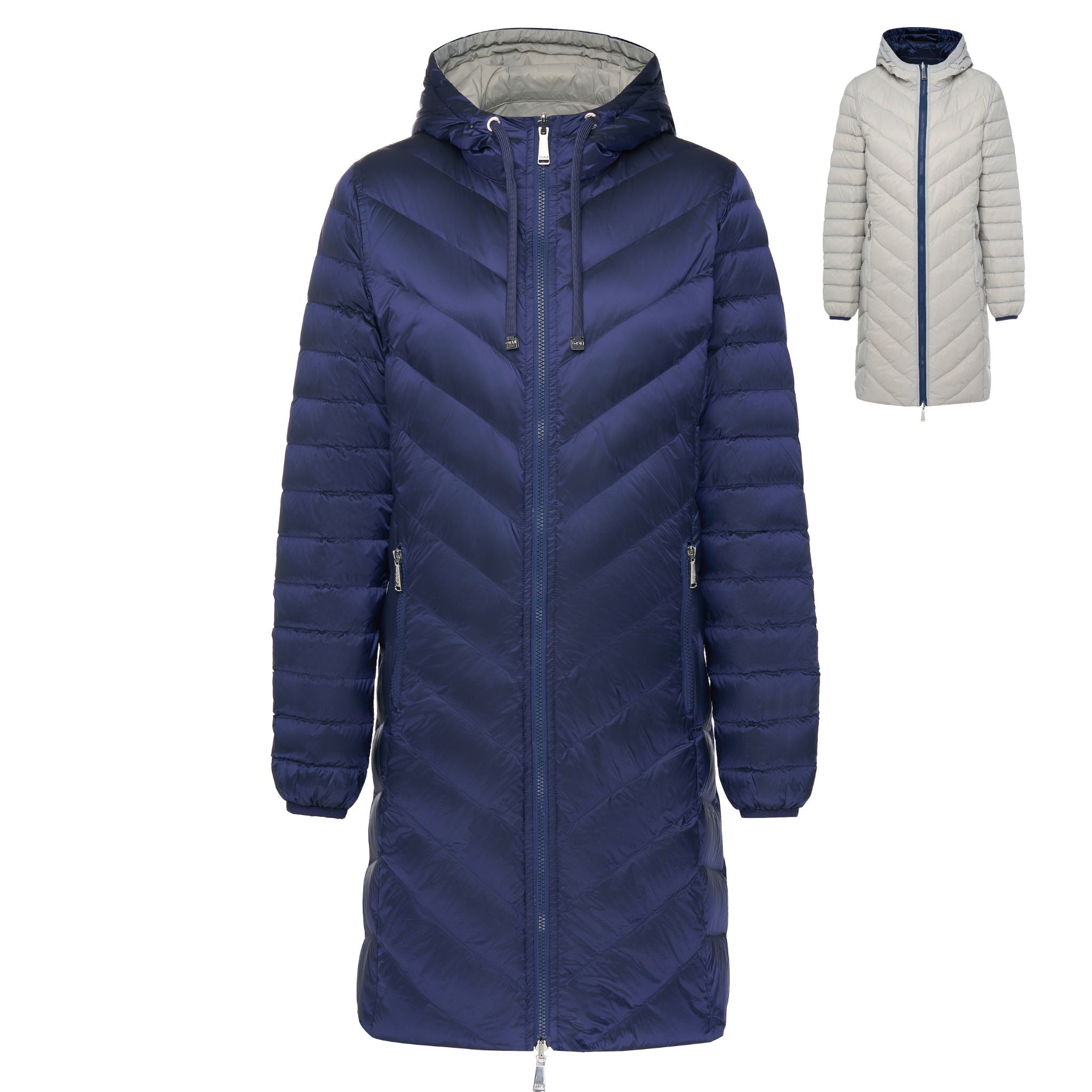 women’s reversible down coat features a lightweight, packable construction with Moke’s signature warmth-to-weight ratio. Filled with
