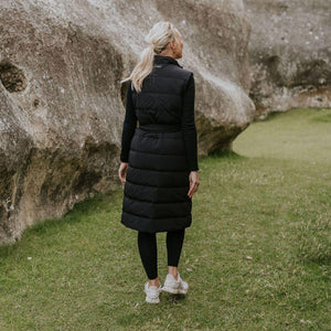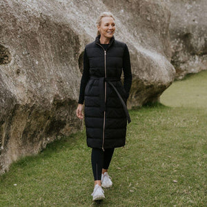 Designed for the sophisticated woman with a timeless sense of style, this elegant maxi vest is the perfect layering piece for both workwear and off-duty looks. Crafted from a stretch down fabric blend with a soft, velvety hand feel, it offers warmth without compromising on comfort or style.