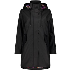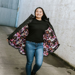 Billie Women's Rain Coat - Moke x Evie Kemp - Black with Purple Fleur