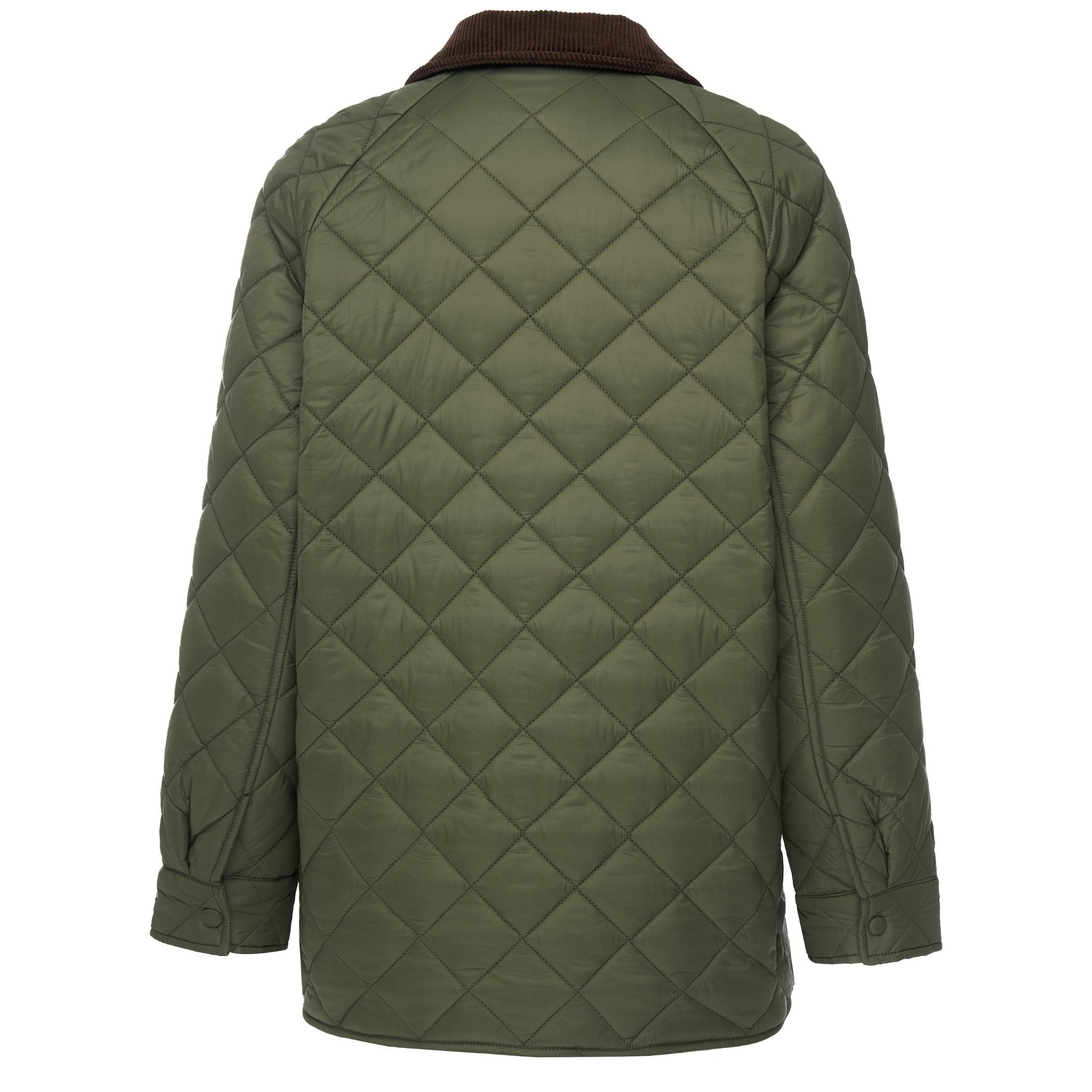Designed with a classic diamond quilt pattern, Daisy channels an elegant English countryside aesthetic while maintaining a clean, modern feel. The statement corduroy collar adds texture and sophistication, while the snap-button front keeps the look relaxed yet elevated.