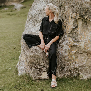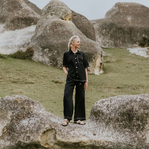 Wear it loose, tucked in, or styled with the Bowie pants for a coordinated, pulled-together summer look.
